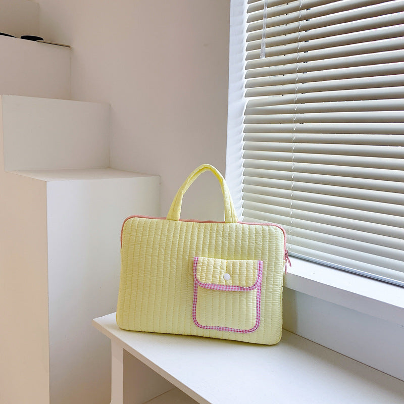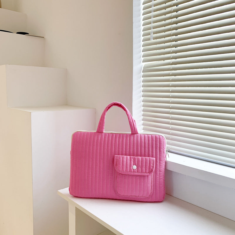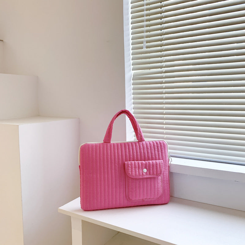 This is an exquisite, handmade, exclusively designed Quilted Classic Minimalist Sweet Pure Color Handle iPad Laptop Bag, 11 inches 13 inches minimalist iPad Air Pro Case, iPad Sleeve, and iPad Bag, perfect as a birthday or anniversary gift for a mom, for a grandmother, for a girlfriend, or for a colleague.