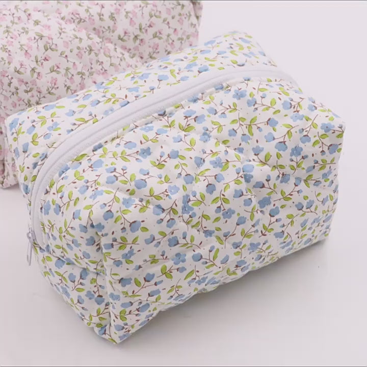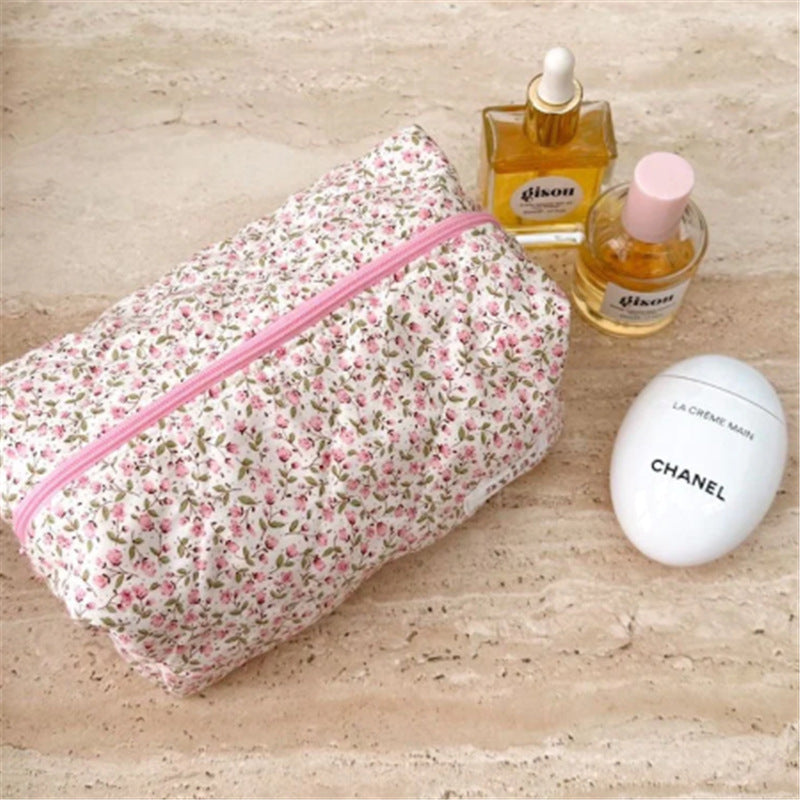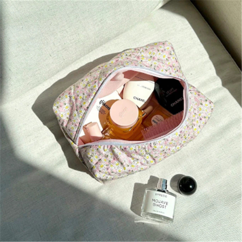 Classic Retro Floral Daisy Quilted cotton Small Makeup Bag, Cosmetic bag, Large Capacity Makeup Bag