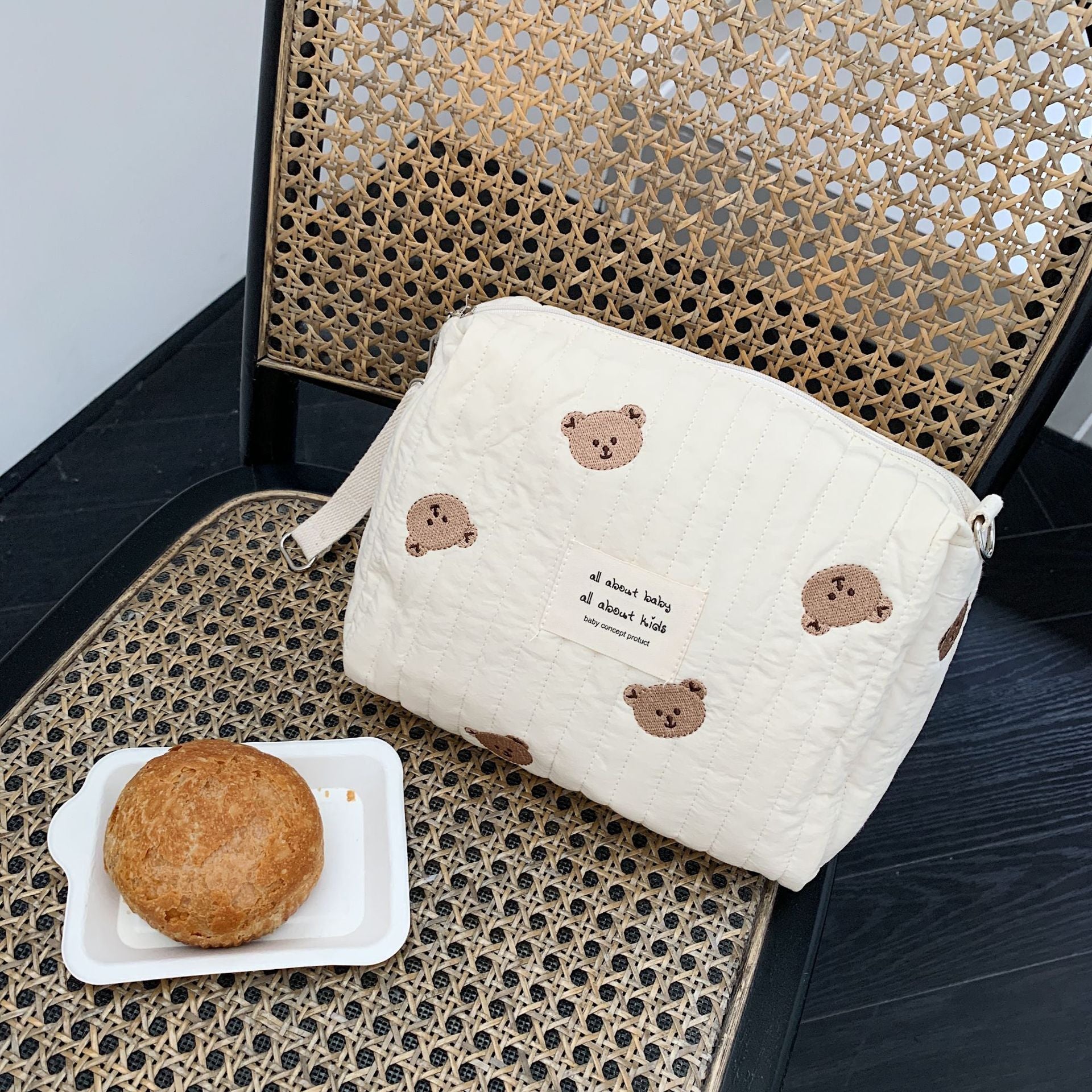 Cute Kawaii Bear Rabbit Floral Nappy Bag, Large Makeup Bag,Stylish Diaper bag, EPram Bag
