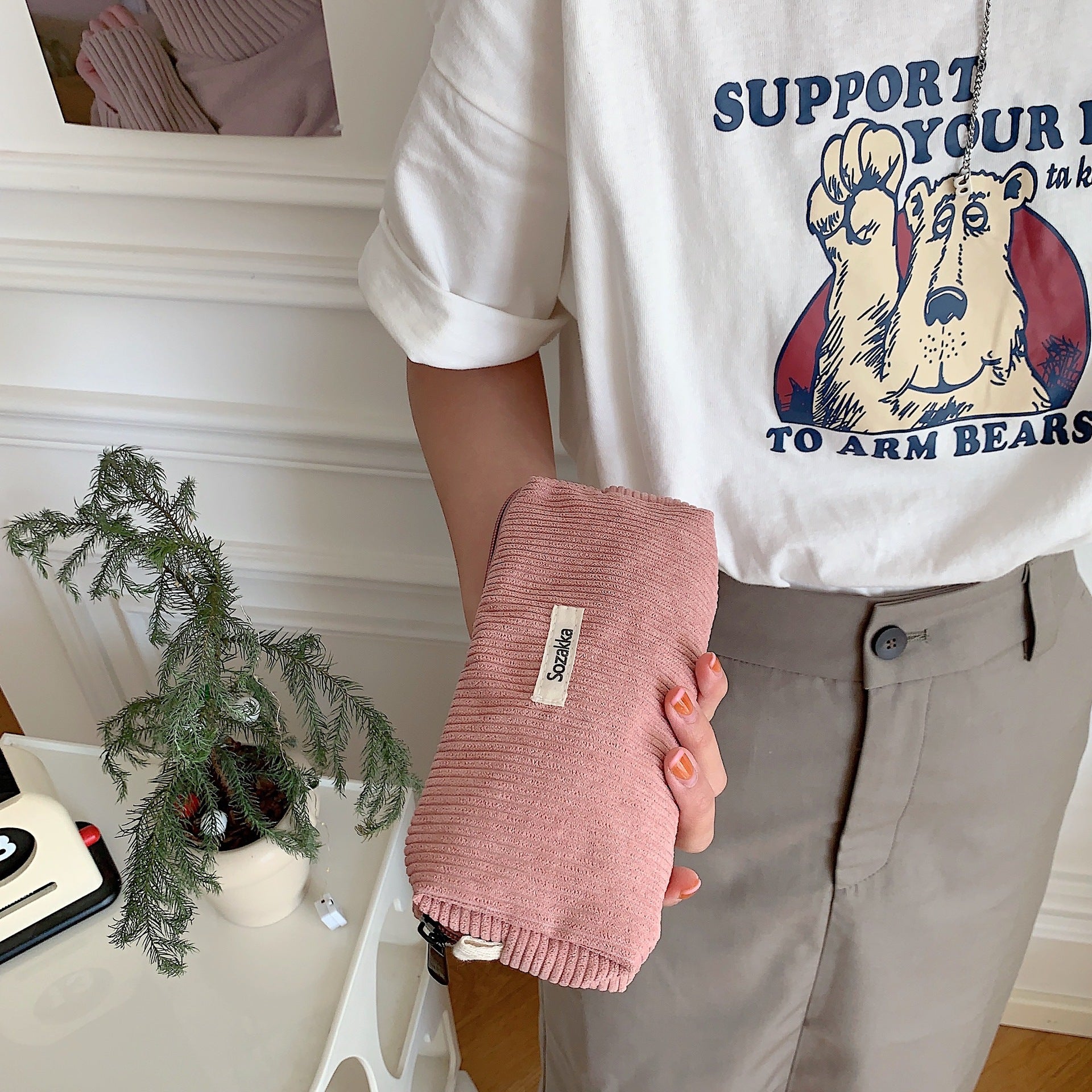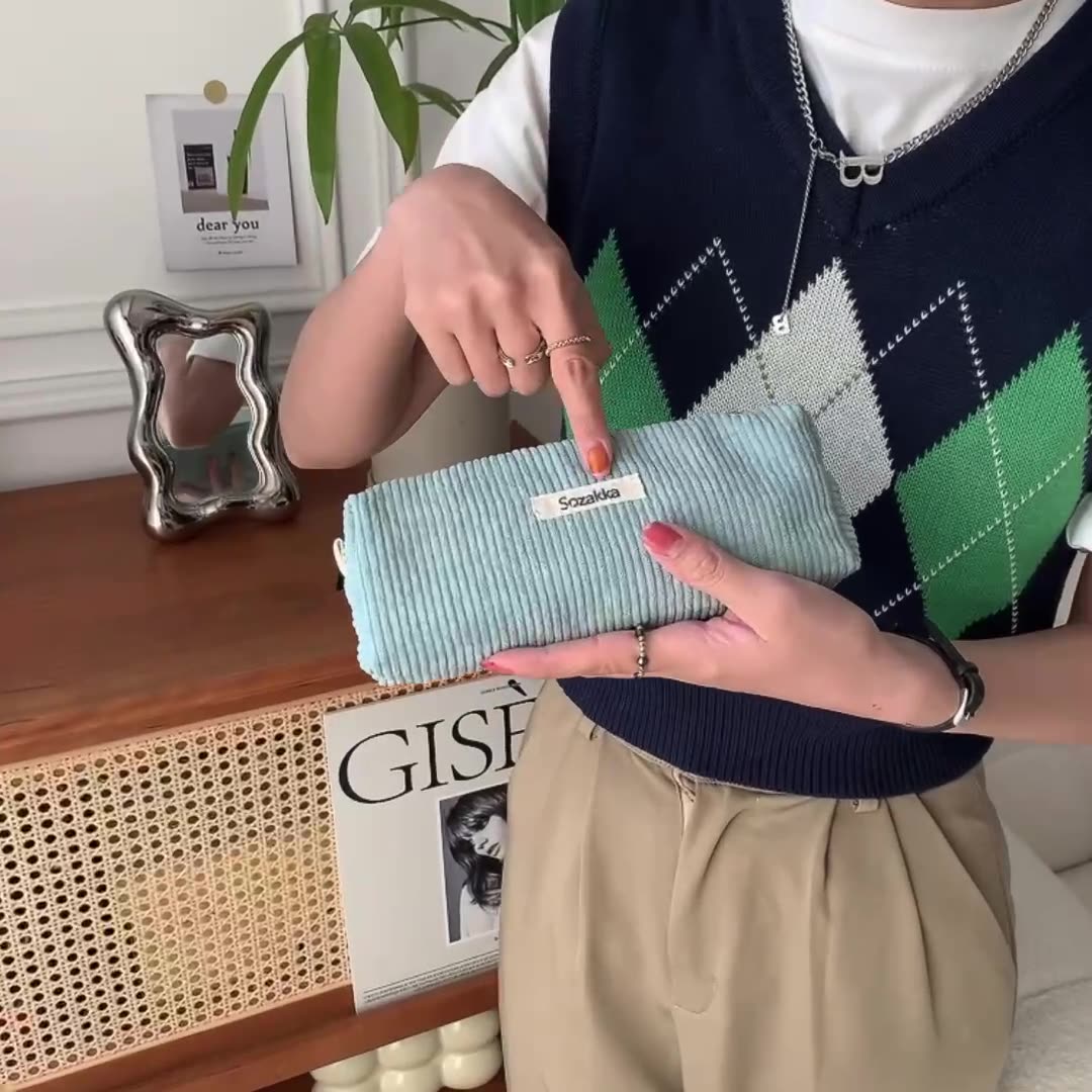 Cute Minimalist Classic Pure Color Corduroy Makeup Bag, Cosmetic Organizer, Makeup Toiletry Organizer, Travel Pouch, Cute Pencil Case