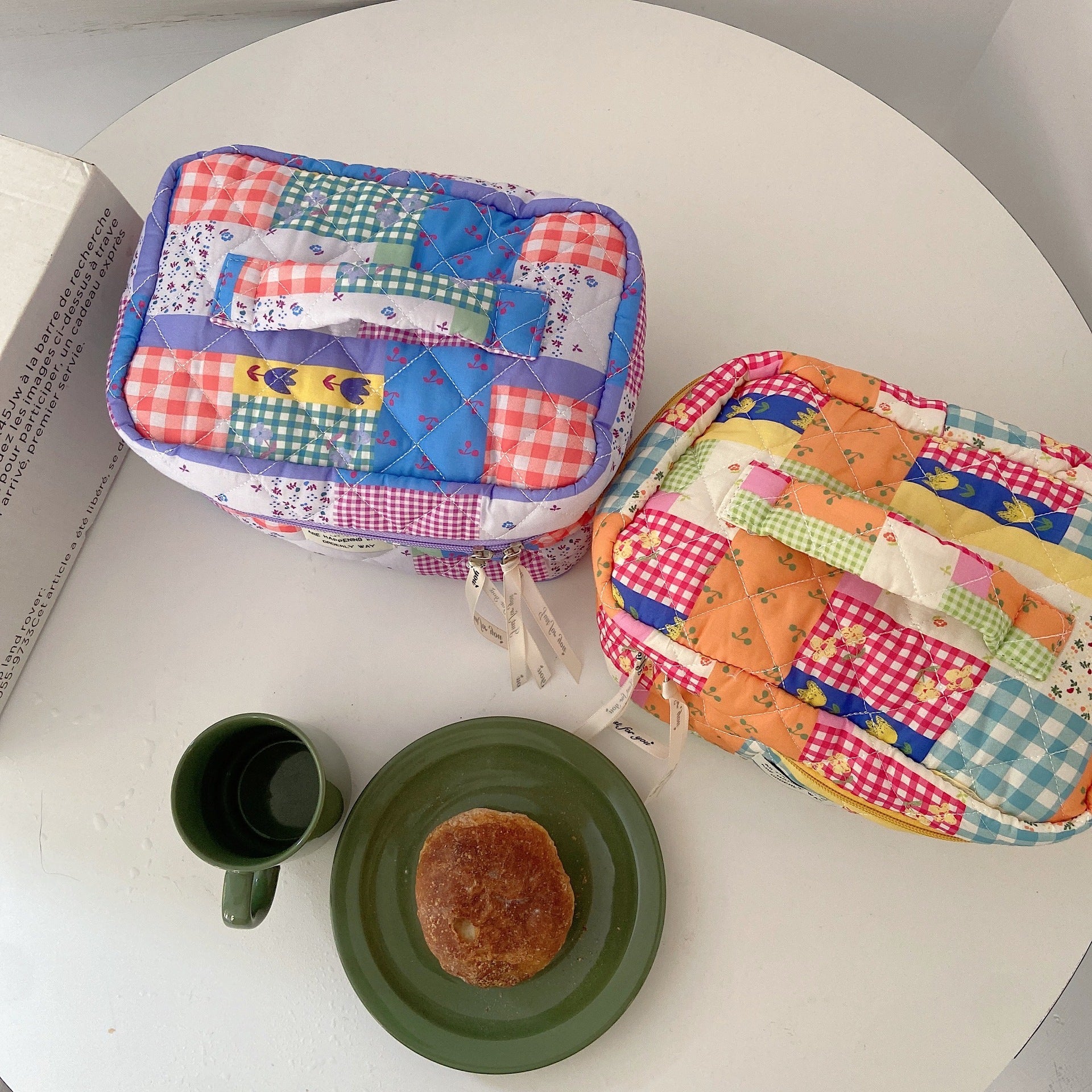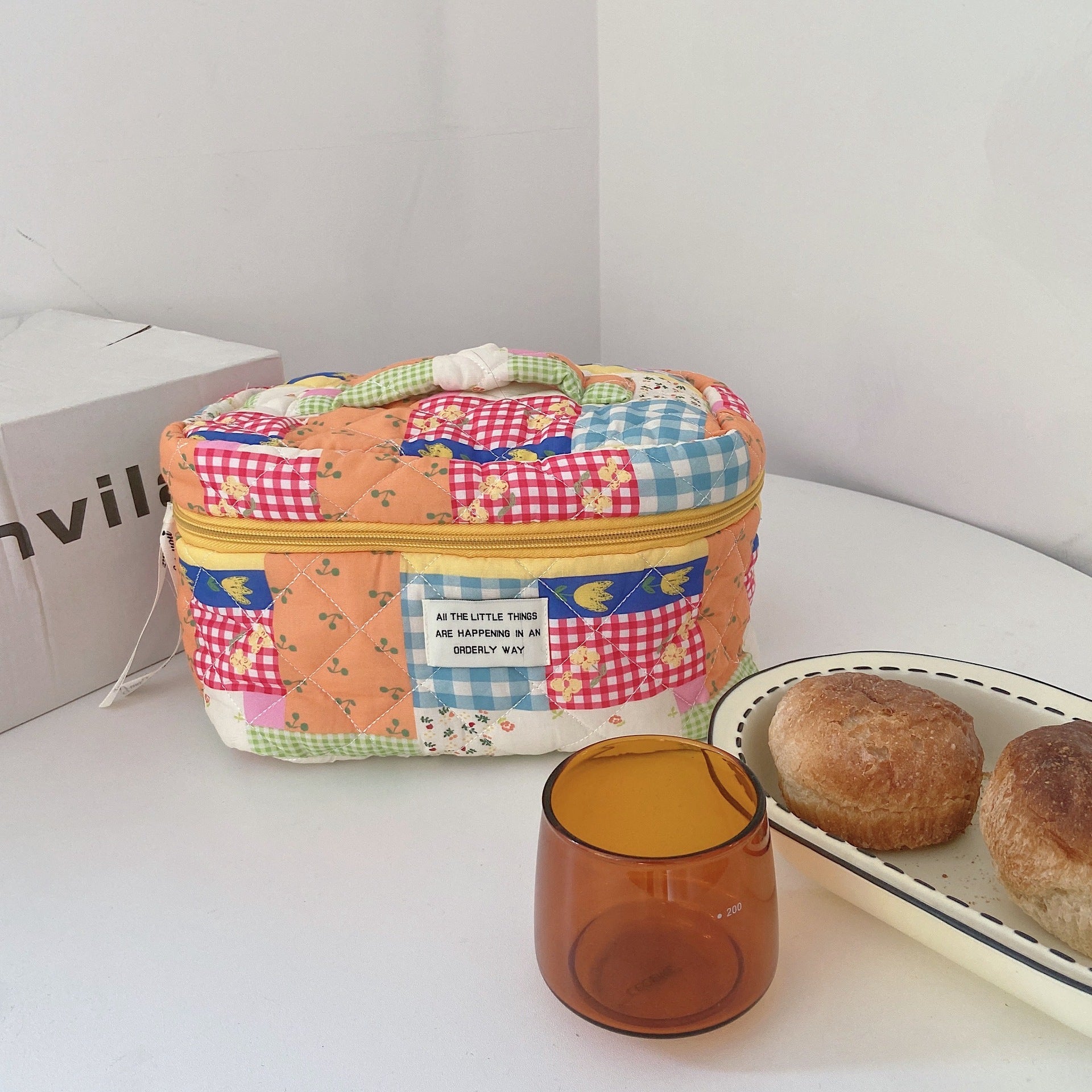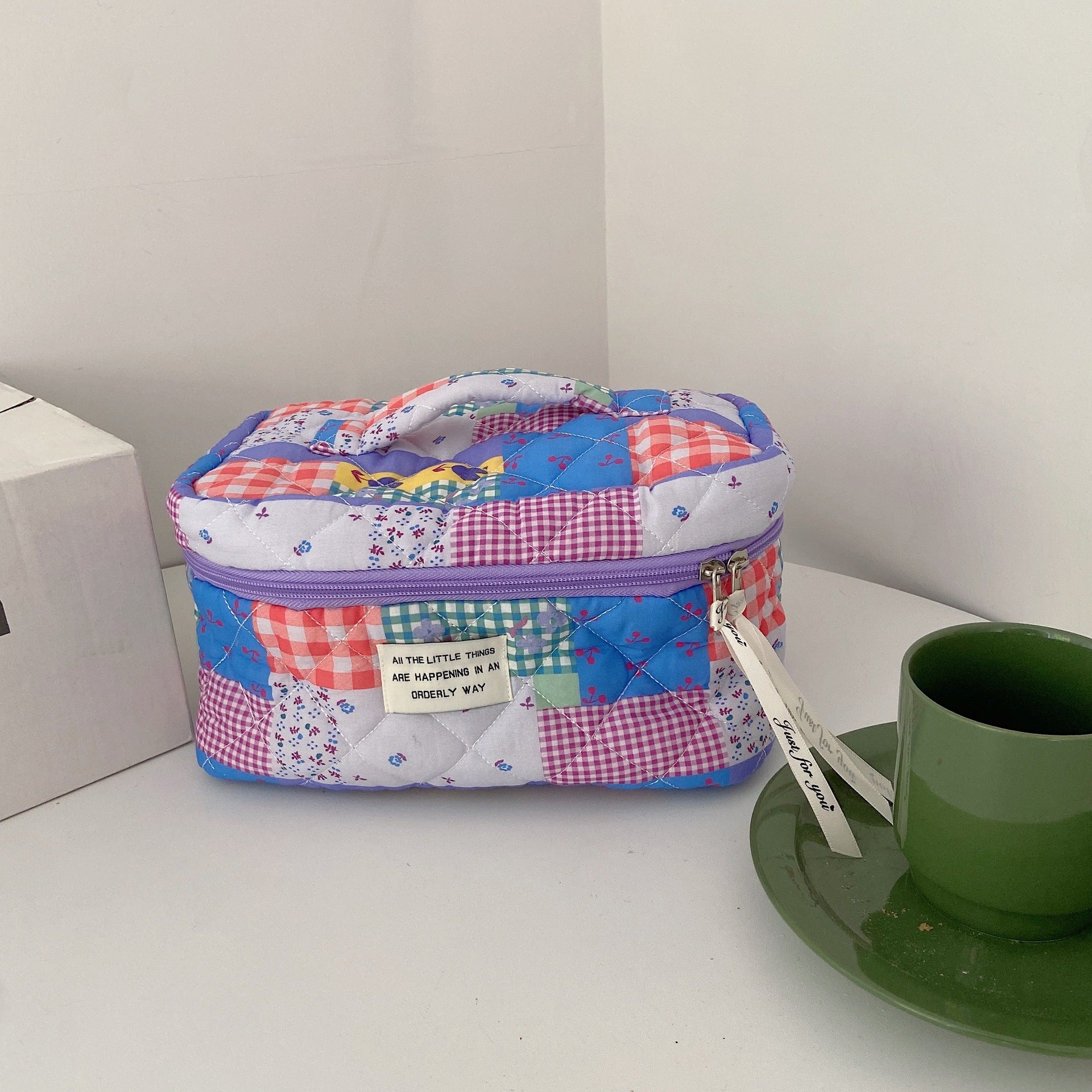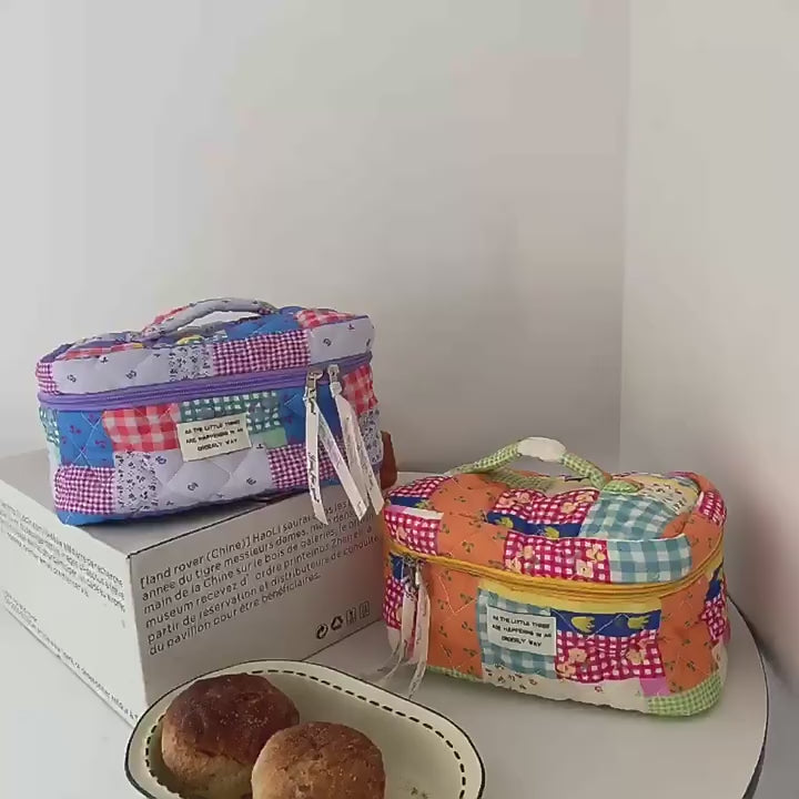 Cute Fresh Puzzle Orange Purple Quilted cotton Cosmetic Organizer, Makeup Toiletry Organizer, Large Capacity Makeup Bag