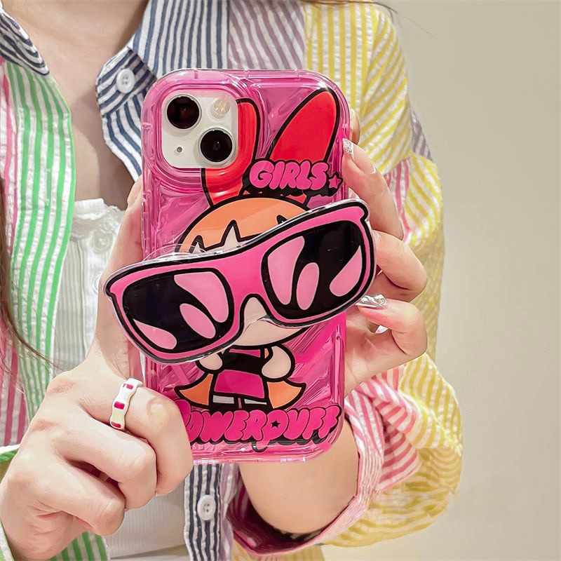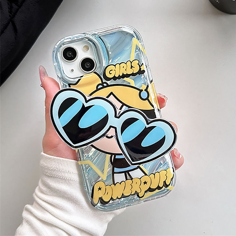 Cute Powerpuff Girls Glasses Holder Case For iPhone 14-7/8/SE 2020 Clear Soft Silicone Cover