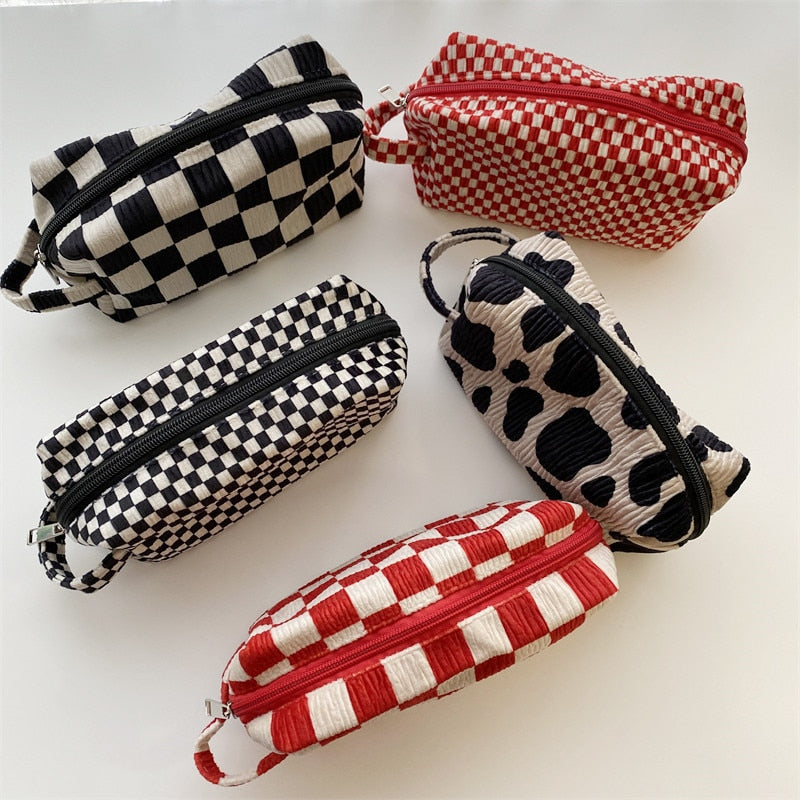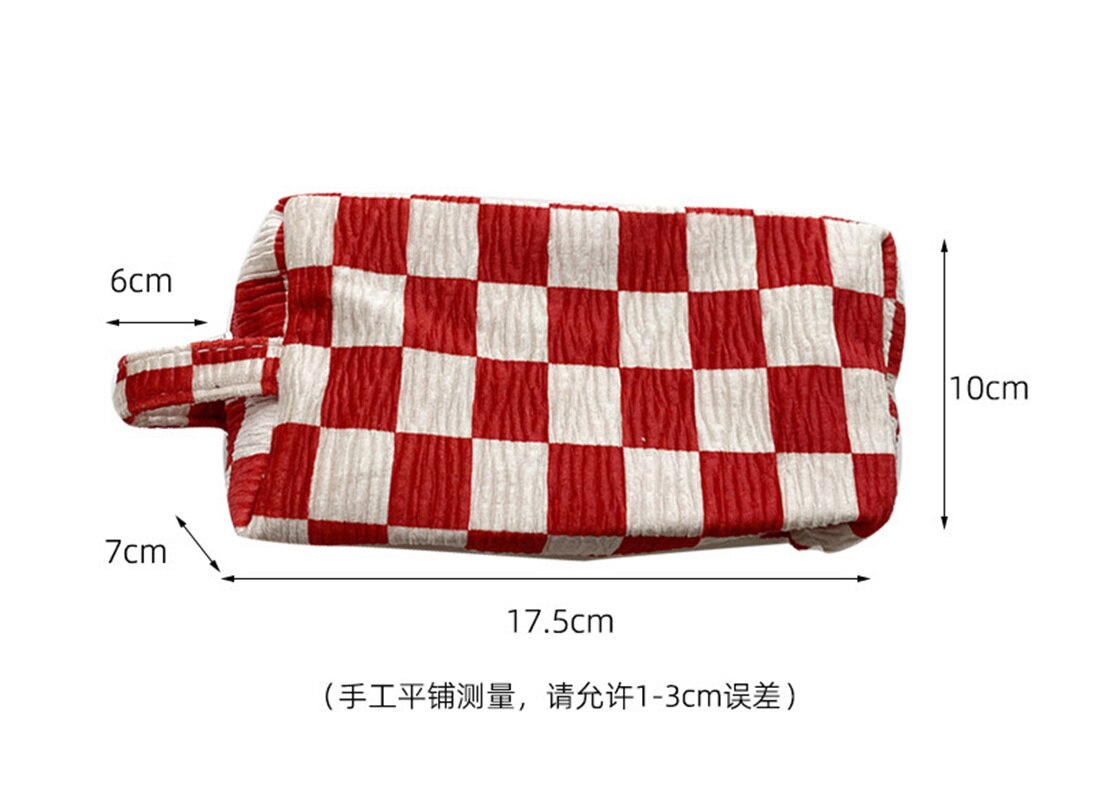 Fashion Velvet Plaid Travel Cosmetic Purse Storage Bag Toiletry Pouch Bag Pencil Cases