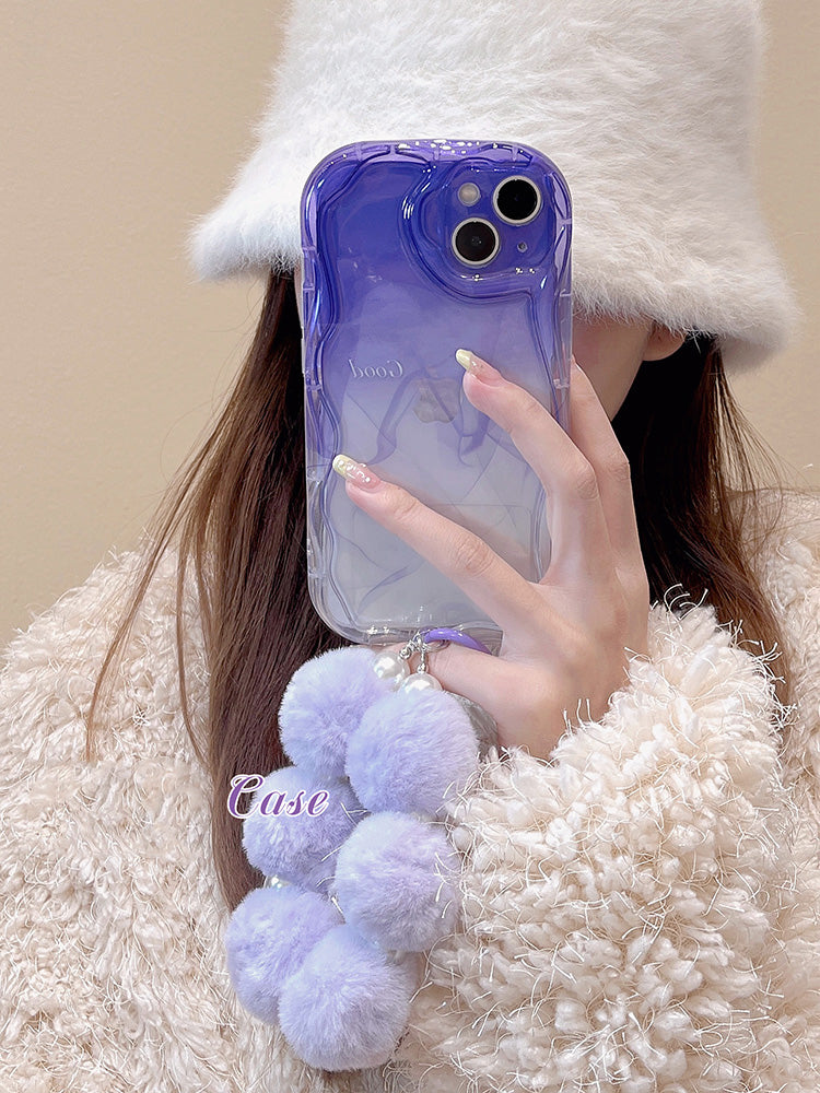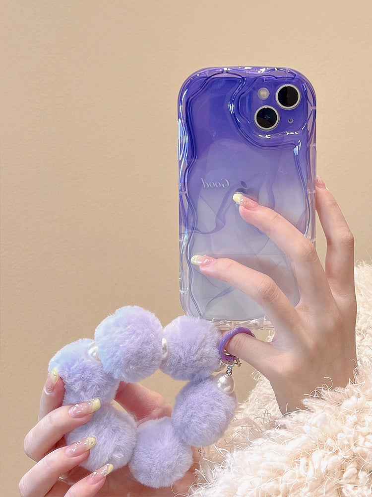Purple Gradient Cute Phone case with purple plash pendant