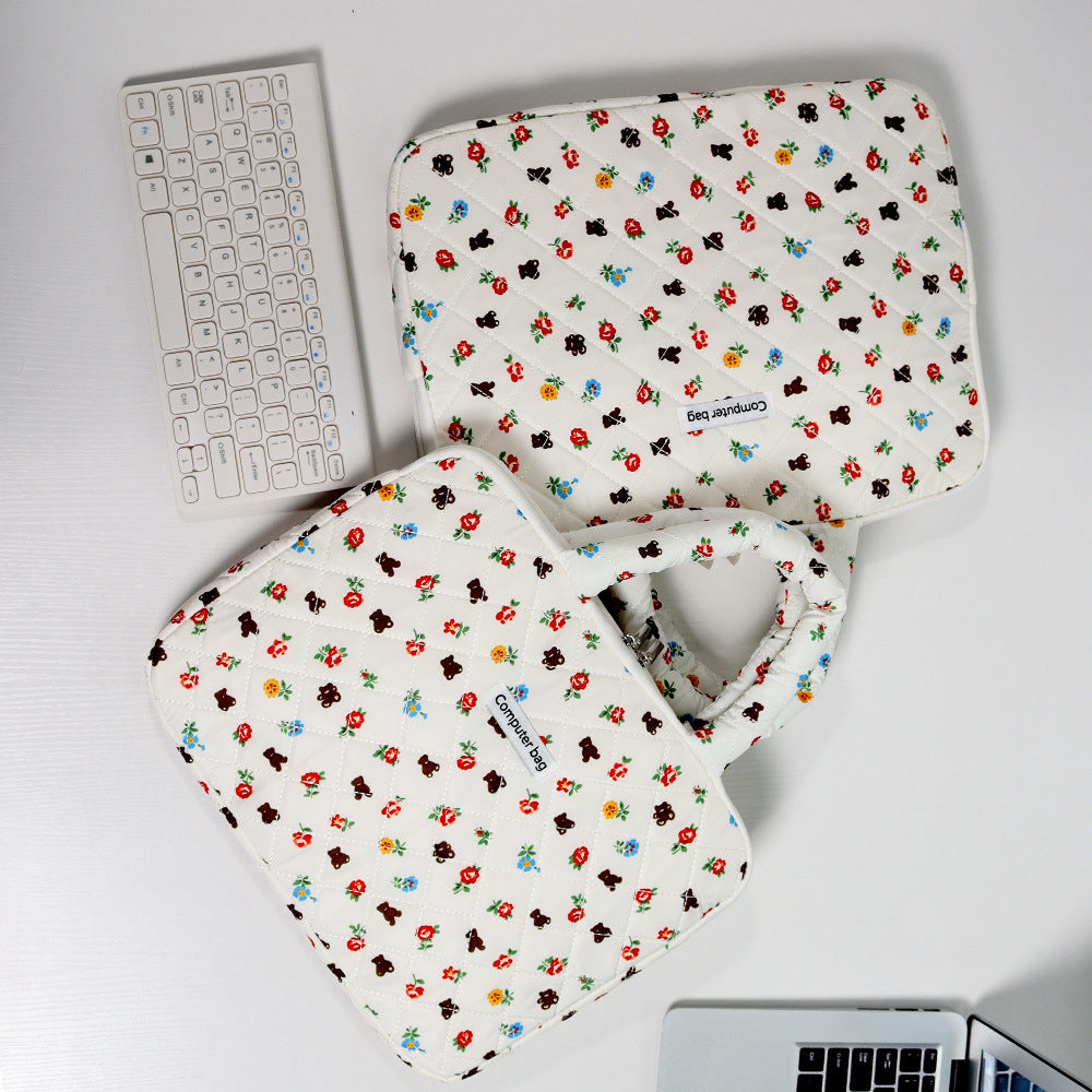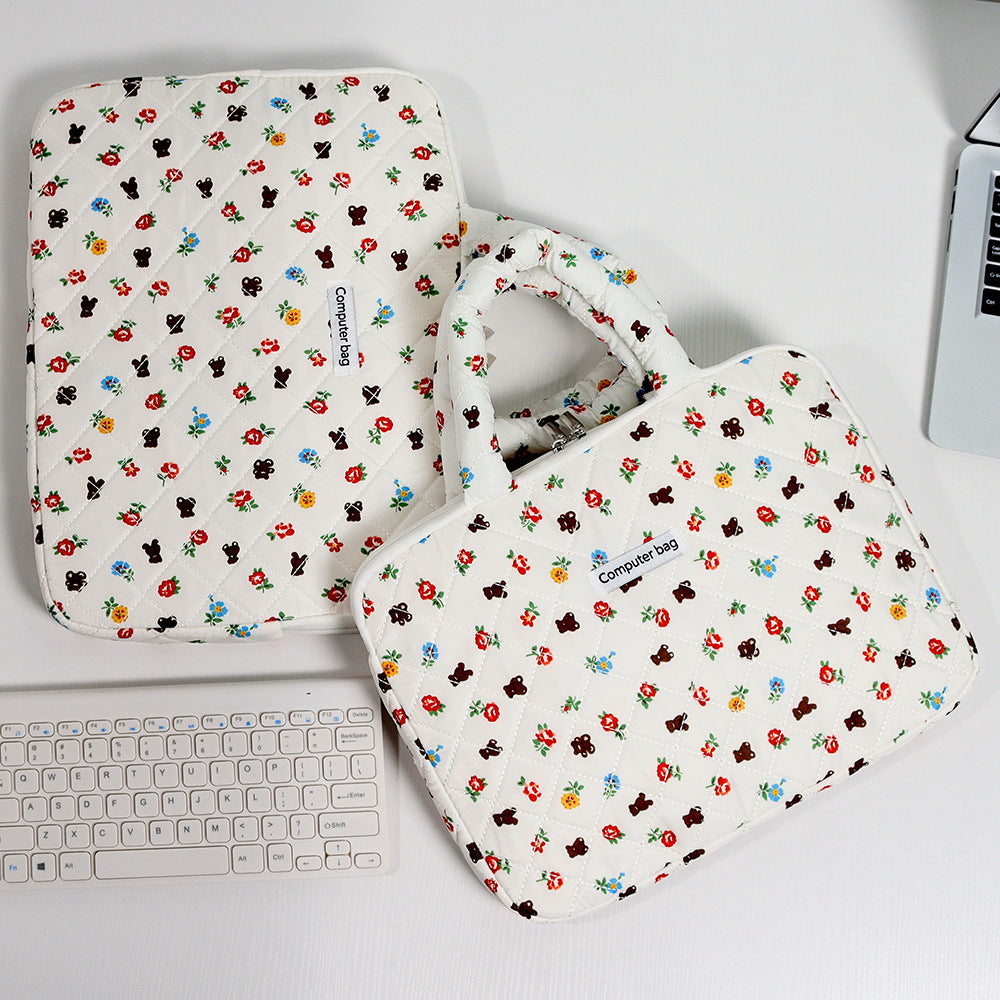 Quilted Cute Bear Red Floral iPad Bag, iPad Sleeve,Laptop Sleeve